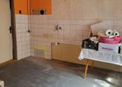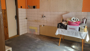 Kuchyňa s praktickým výstupom do záhrady, kúpeľňa a WC.
