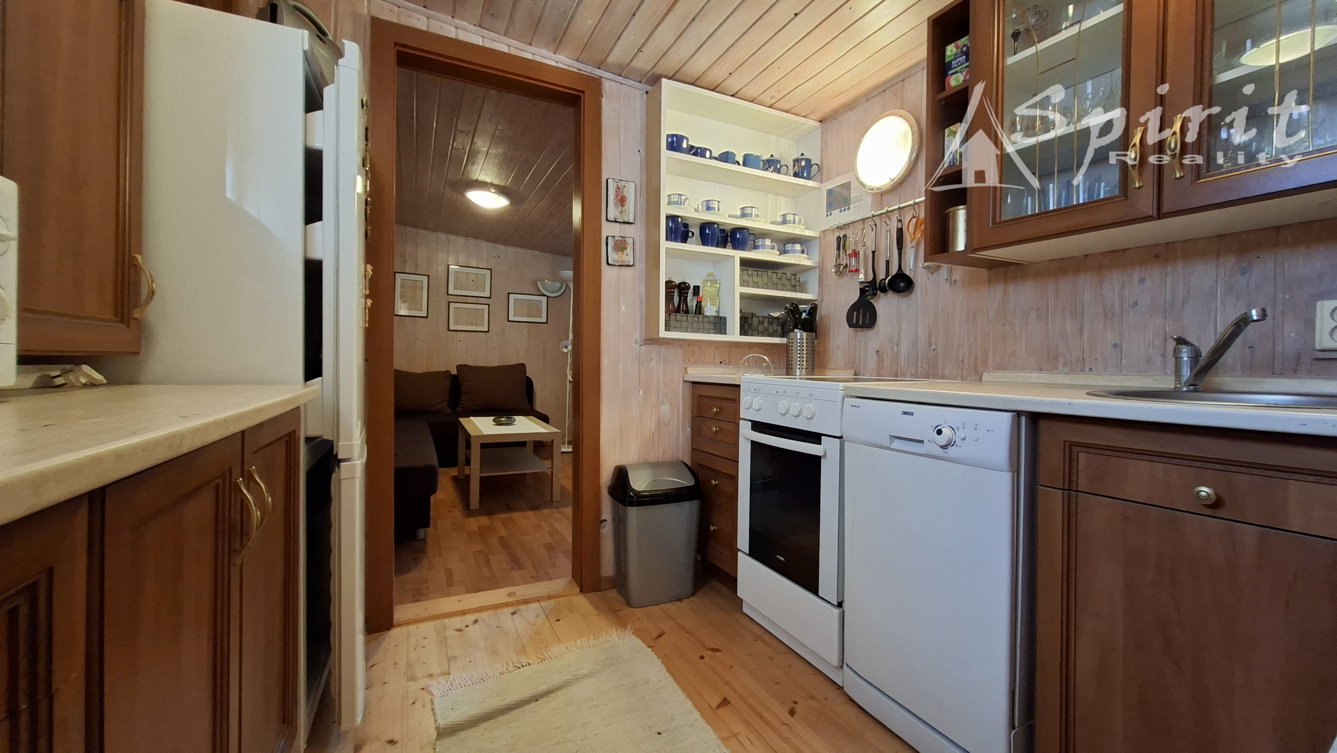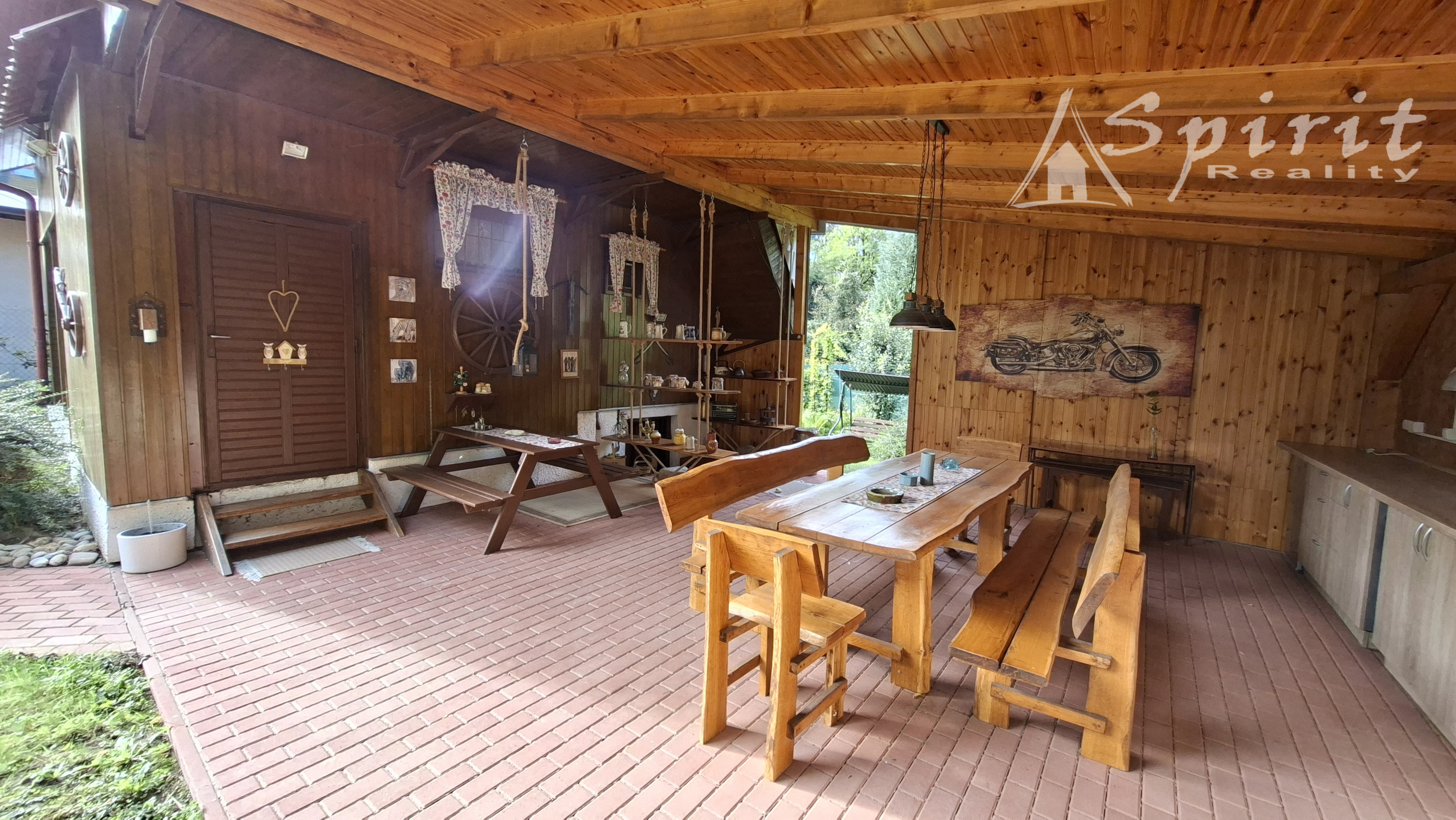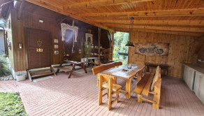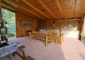 kuchyňa, obývacia izba, kúpeľňa, priestranný altánok, pivnica + úložný priestor na drevo