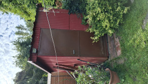 Na záhrade plechový záhradný domček na náradie atď.