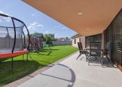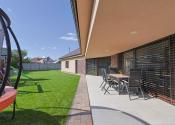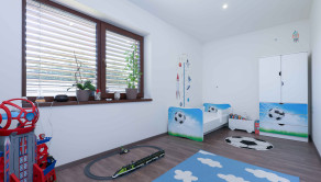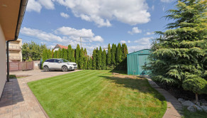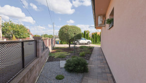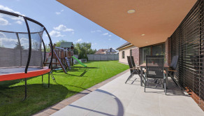 Exteriér: zastrešená terasa so sedením, pozemok je priestranný, upravený, zatrávnený, je tu veľa zelene, okrasné dreviny, rastliny, studňa, trávnik s automatickým závlahovým systémom. Plus detské drevené na mieru robené ihrisko. Nehnuteľnosť je napojená na všetky IS ako voda, elektrina, mestská voda (kanaliz). Záhradný domček.