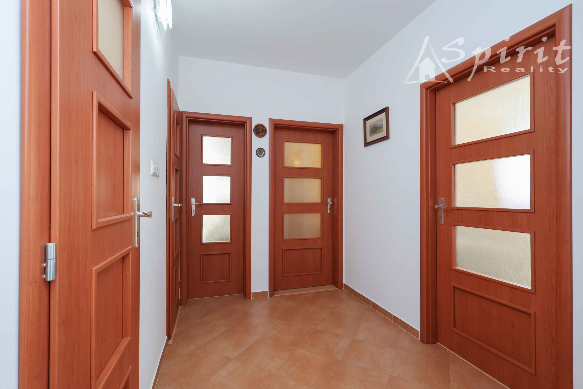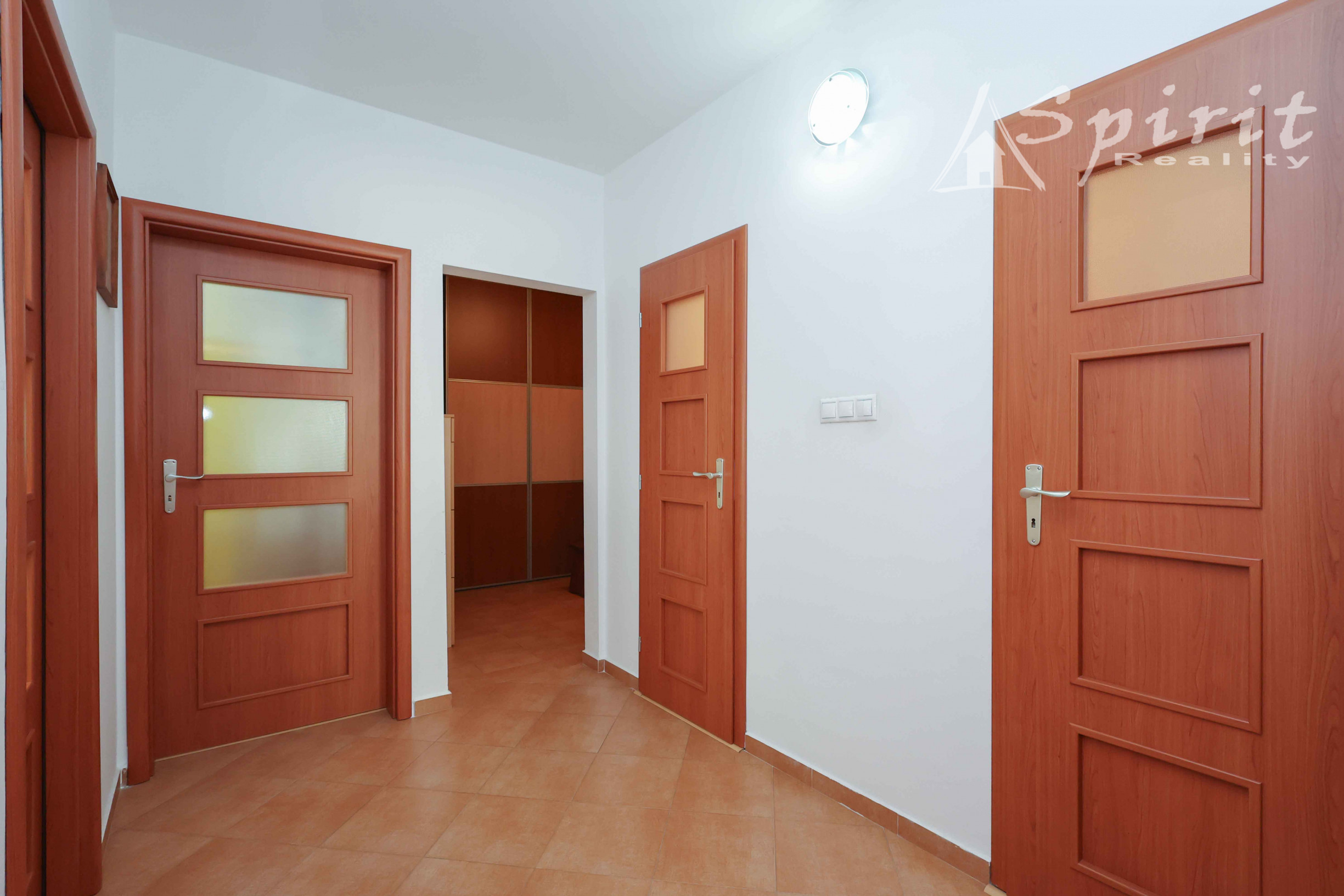 Z chodby je vstup do kuchyne, spálne a detskej izby. Z kuchyne aj z chodby sa vstupuje do priestrannej obývačky, z ktorej je výstup na zasklený balkón.
