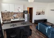 Byt pozostáva zo vstupnej chodby s dostatkom úložného priestoru, kúpeľne s vaňou, toaletou a práčkou, obývacej izby spojenej s kuchynským kútom a spálne.
