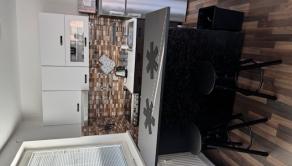 kuchynskej linky so zabudovanými spotrebičmi (el. varná doska, rúra, digestor, chladnička, mikrovlnka),