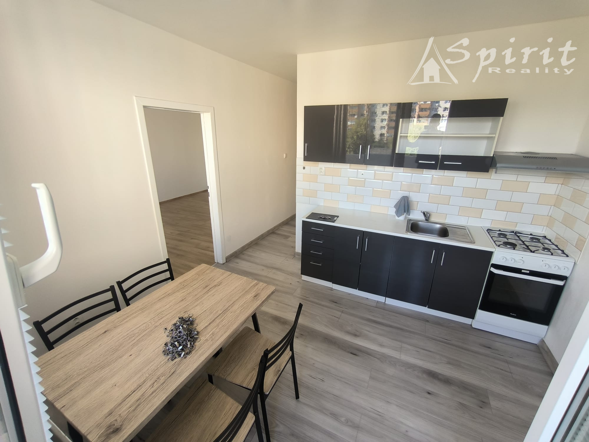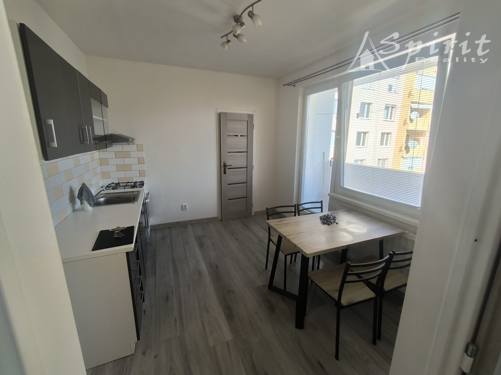 kuchyňa s jedálenským stolom a 4 stoličkami + výstup na balkón
