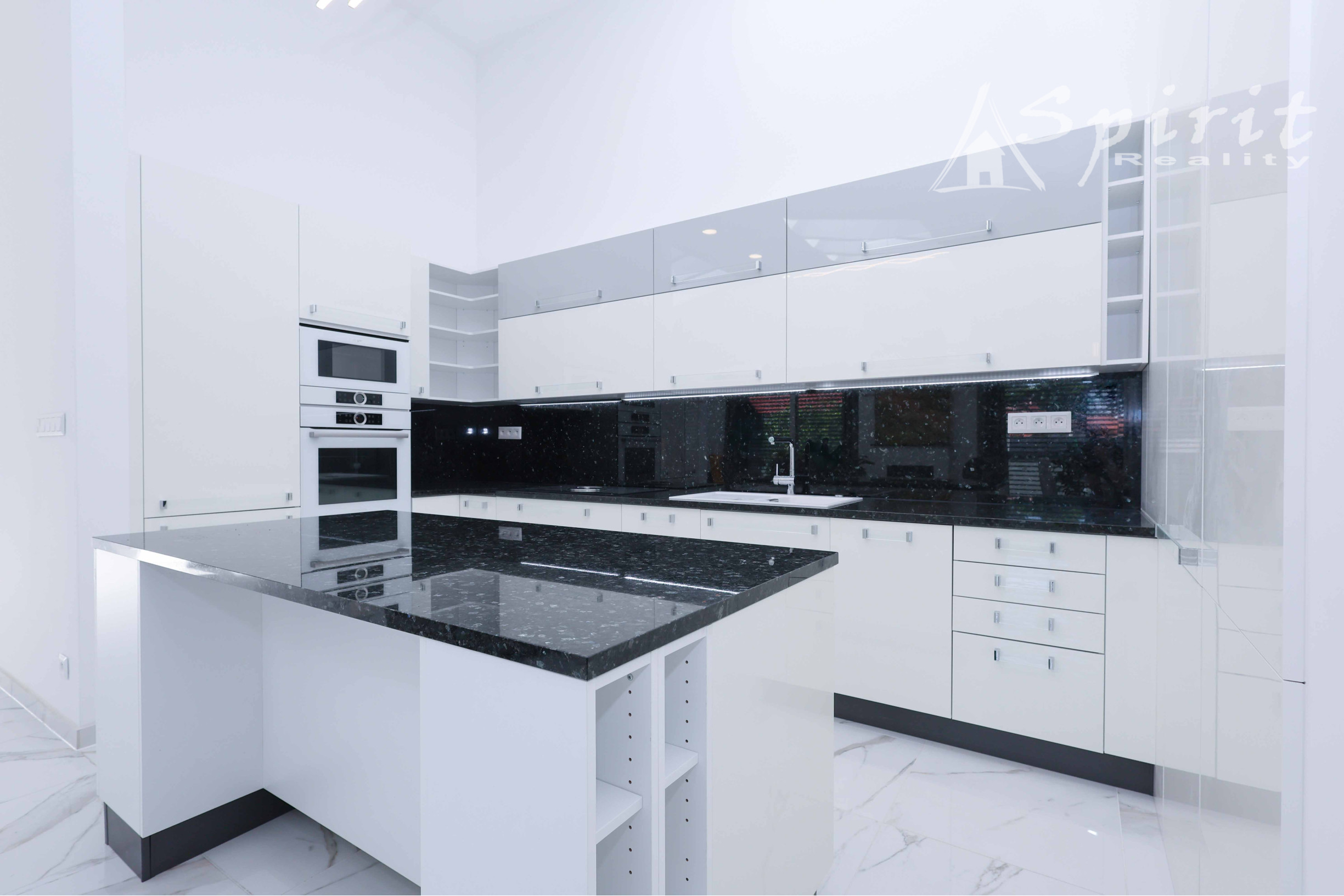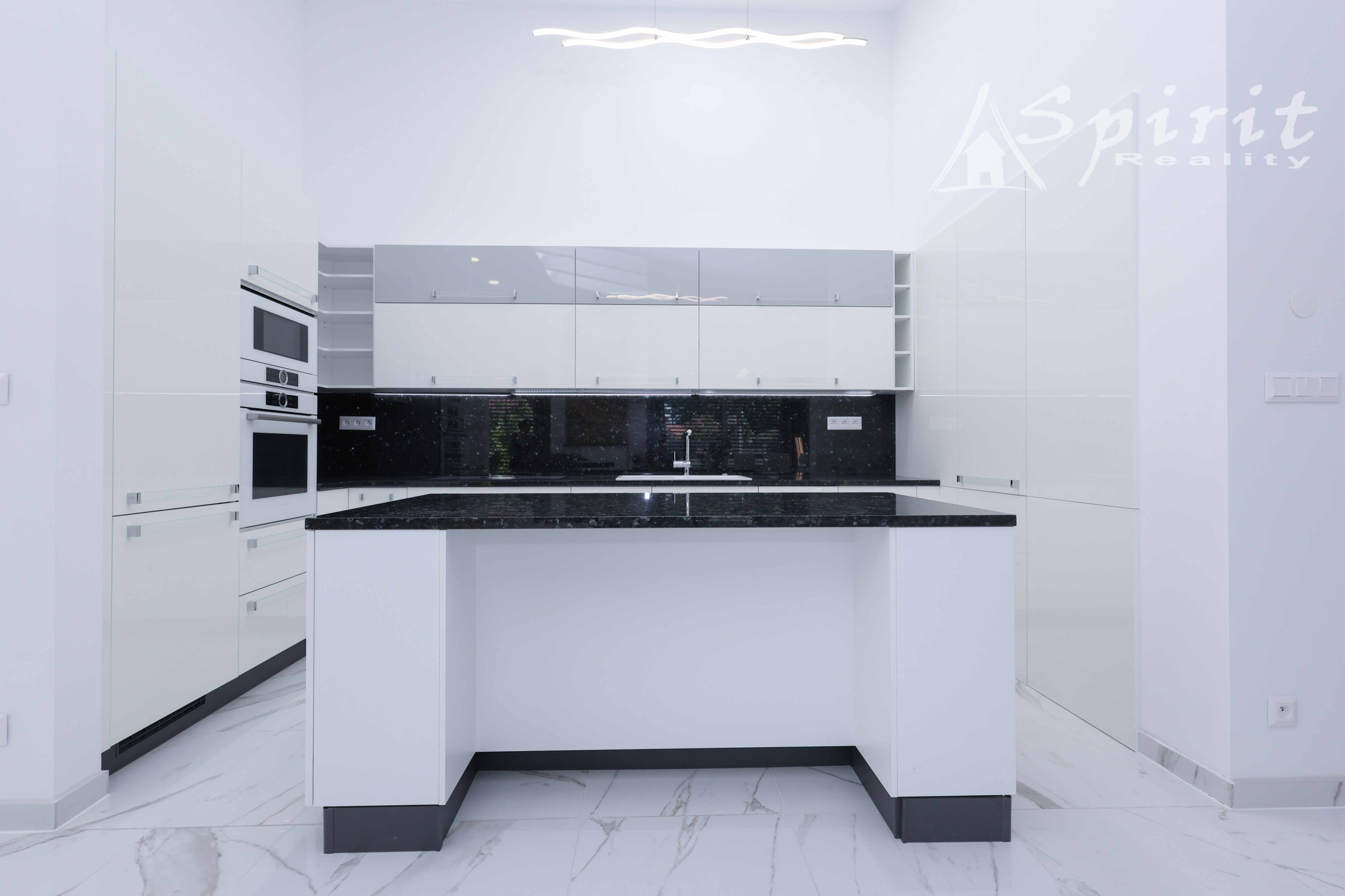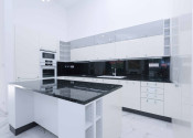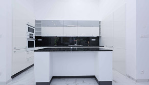 Kuchynská linka na mieru z kvalitných materiálov, pracovná doska z prírodného kameňa