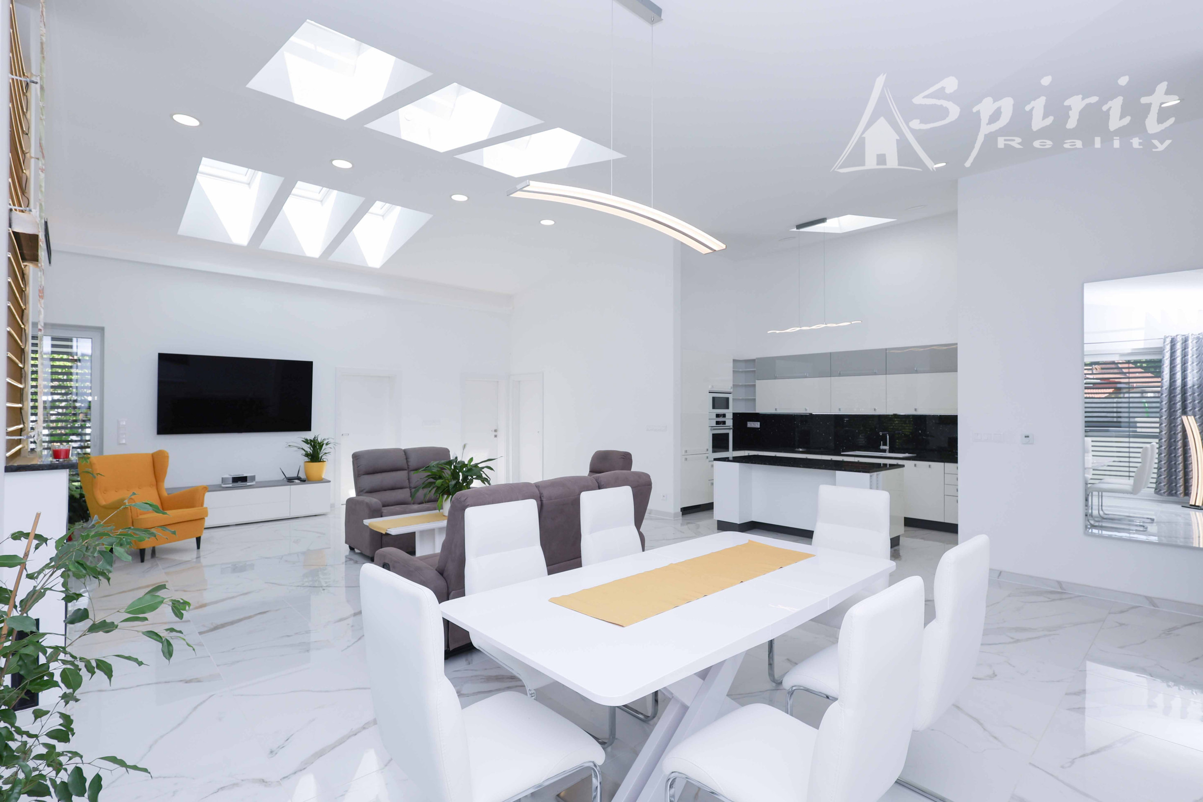 Veľkorysá obývacia izba prepojená s modernou kuchyňou