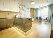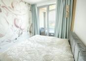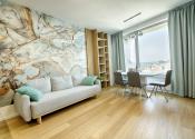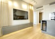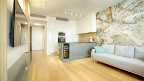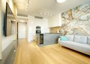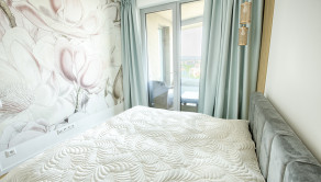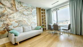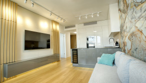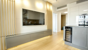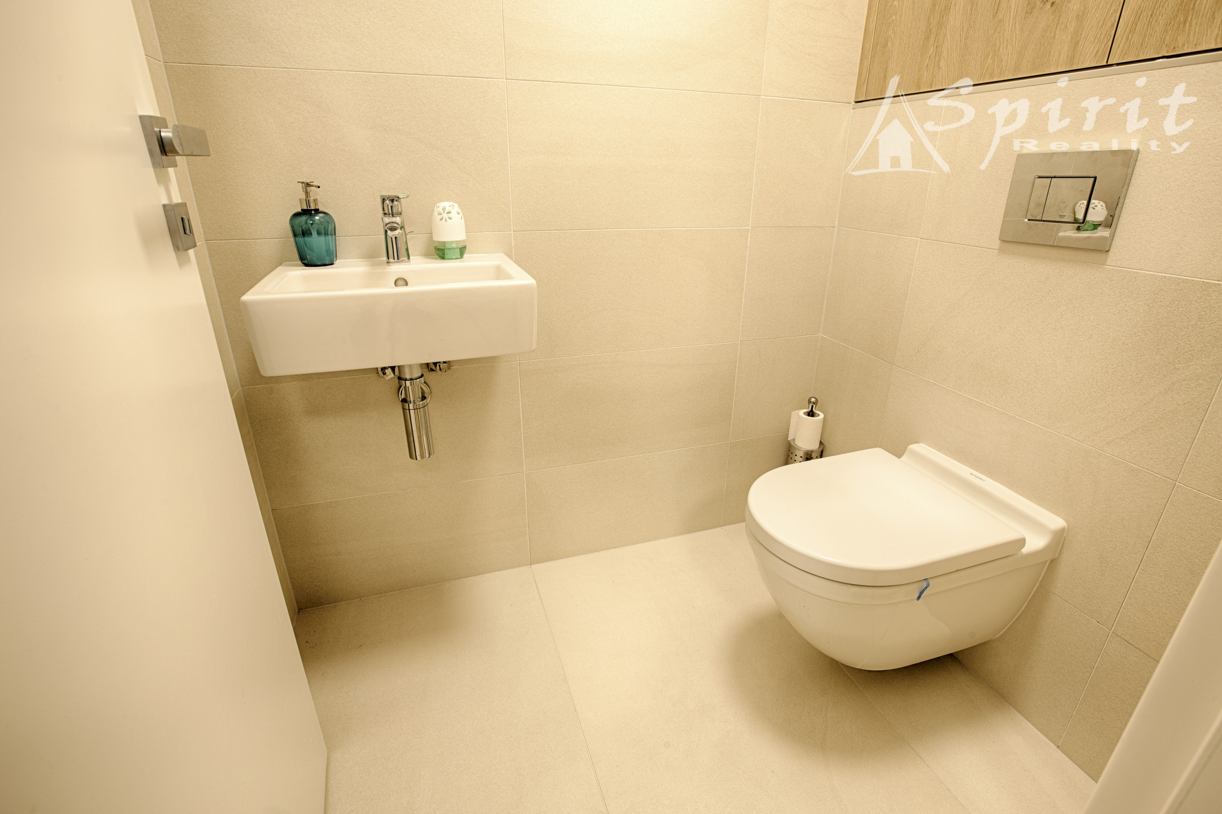 Vybavenie: Byt sa nachádza v novostavbe a prenajíma sa plne zariadený a vybavený elektrospotrebičmi, centrálna klimatizácia - rekuperácia, množstvo úložného priestoru vďaka vstavaným skriniam v chodbe a spálni. V obývacej izbe je k dispozícii TV a internet.