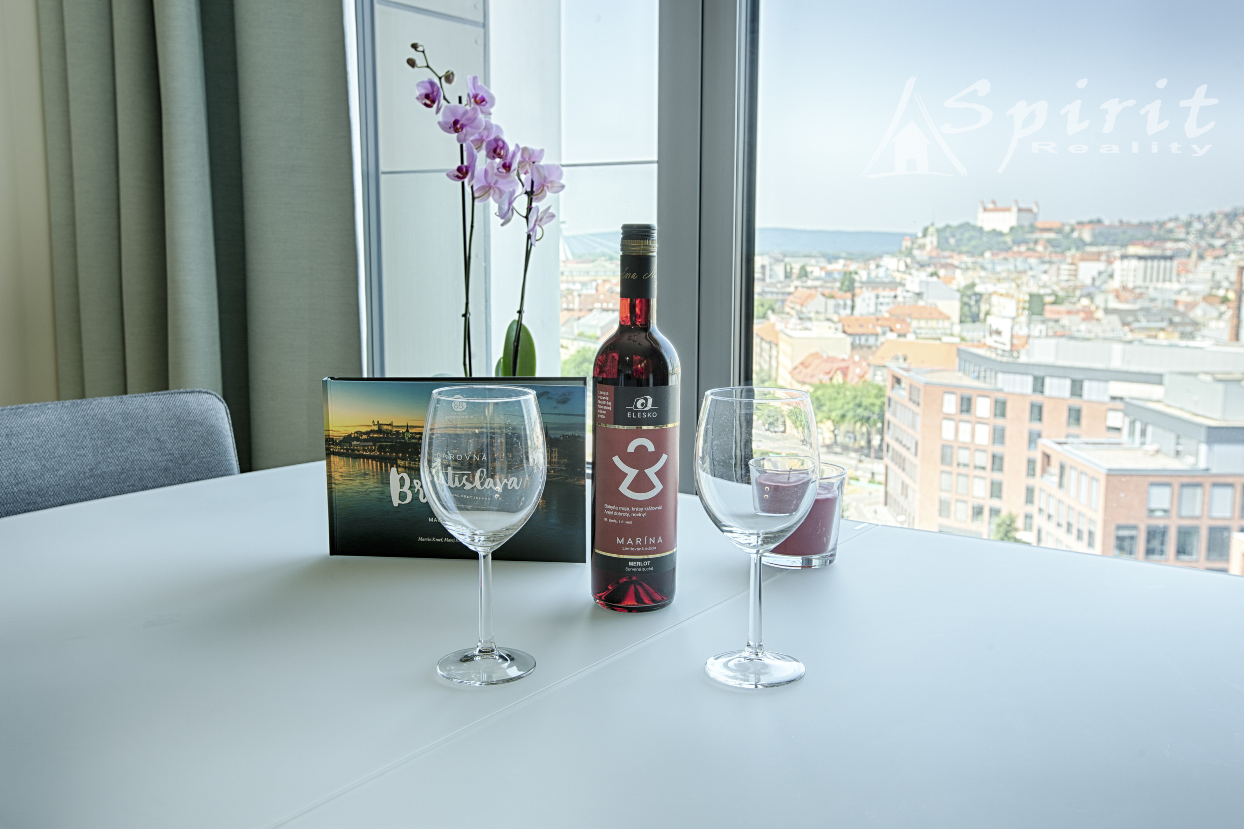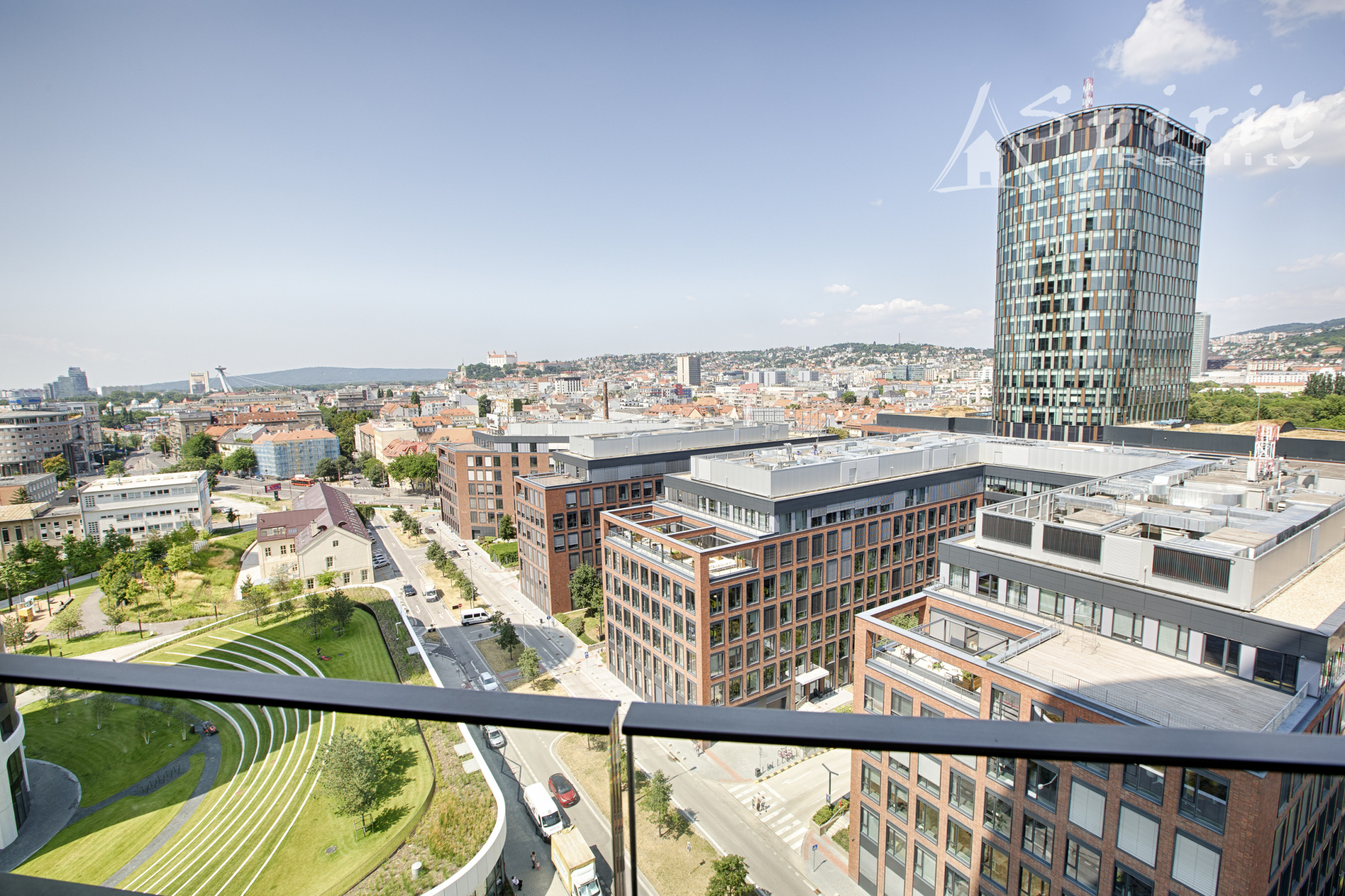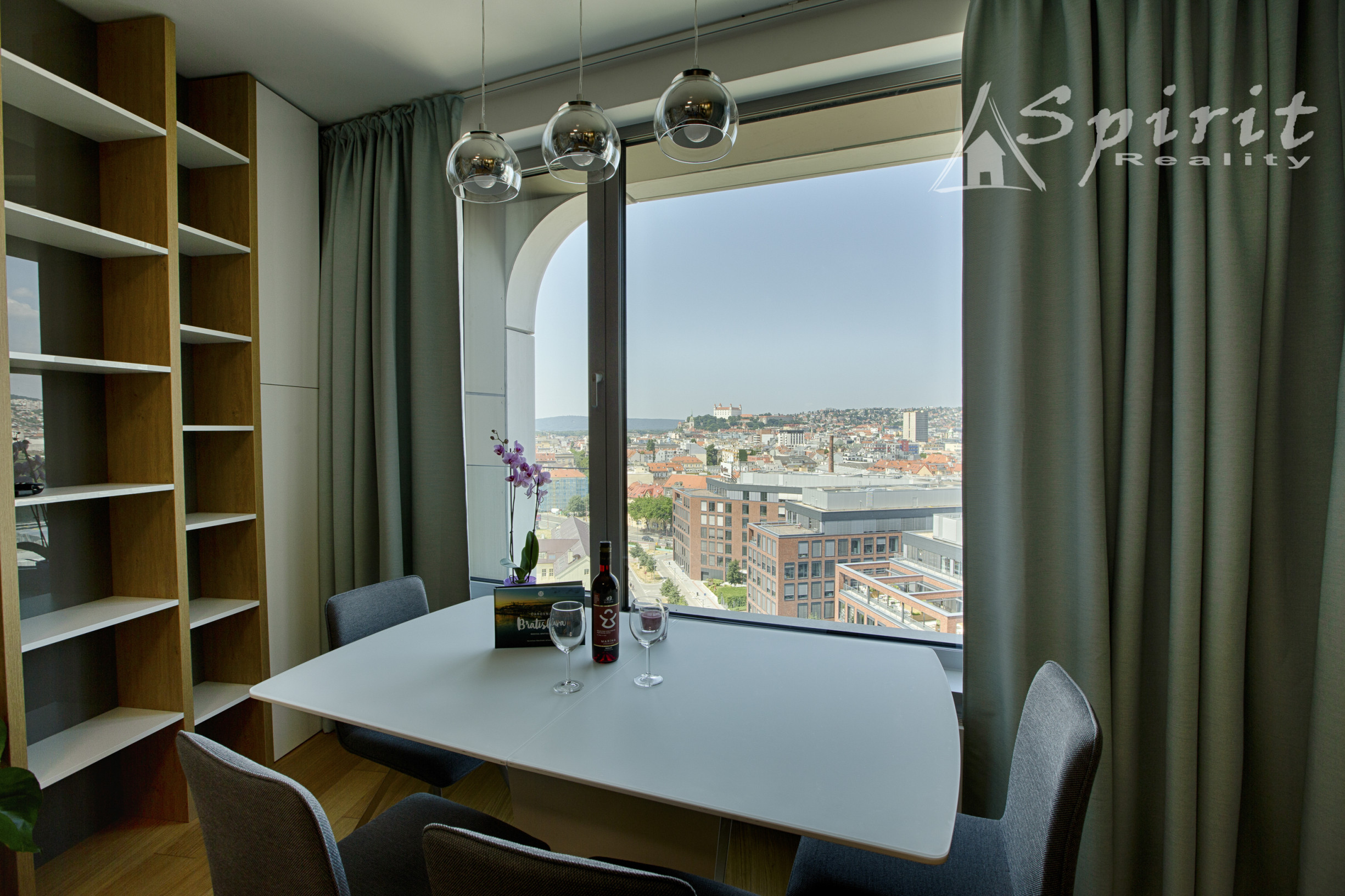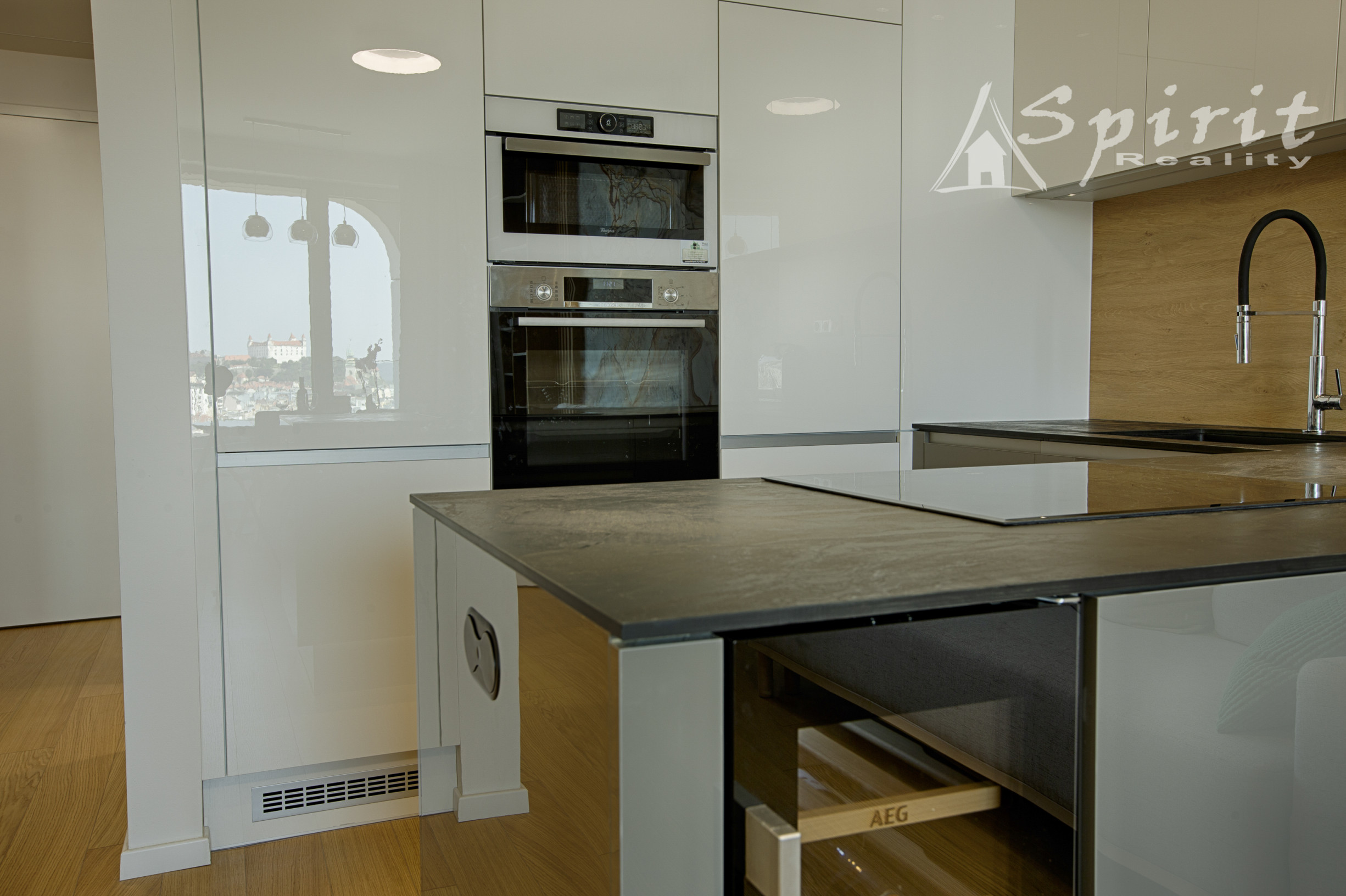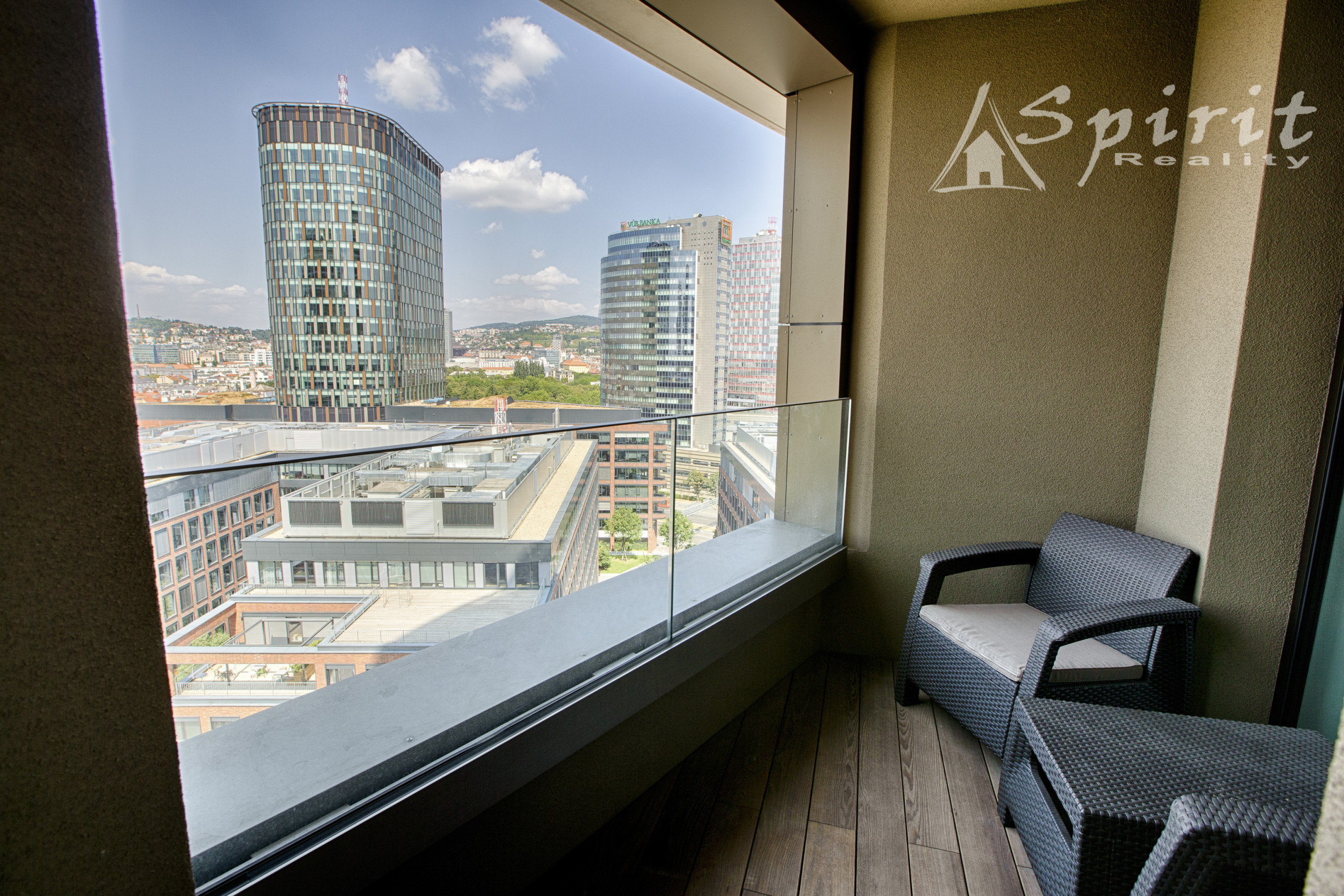 Ponúkame na prenájom luxusný, dizajnový 2i byt 50m2, s výhľadom na hrad, v projekte SKYPARK - Továrenská ul. Len 2 min. od OC NIVY.
