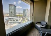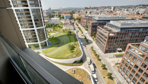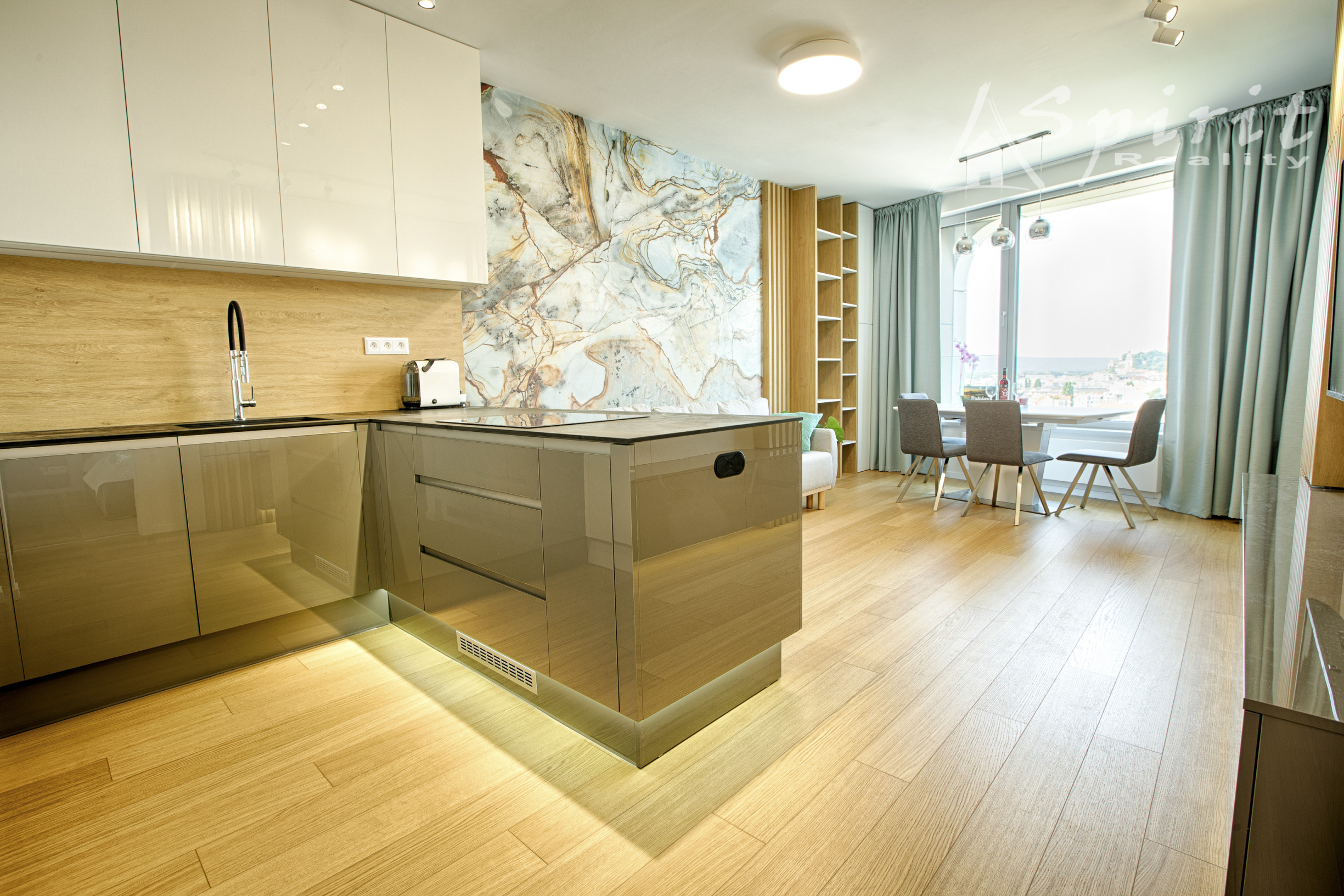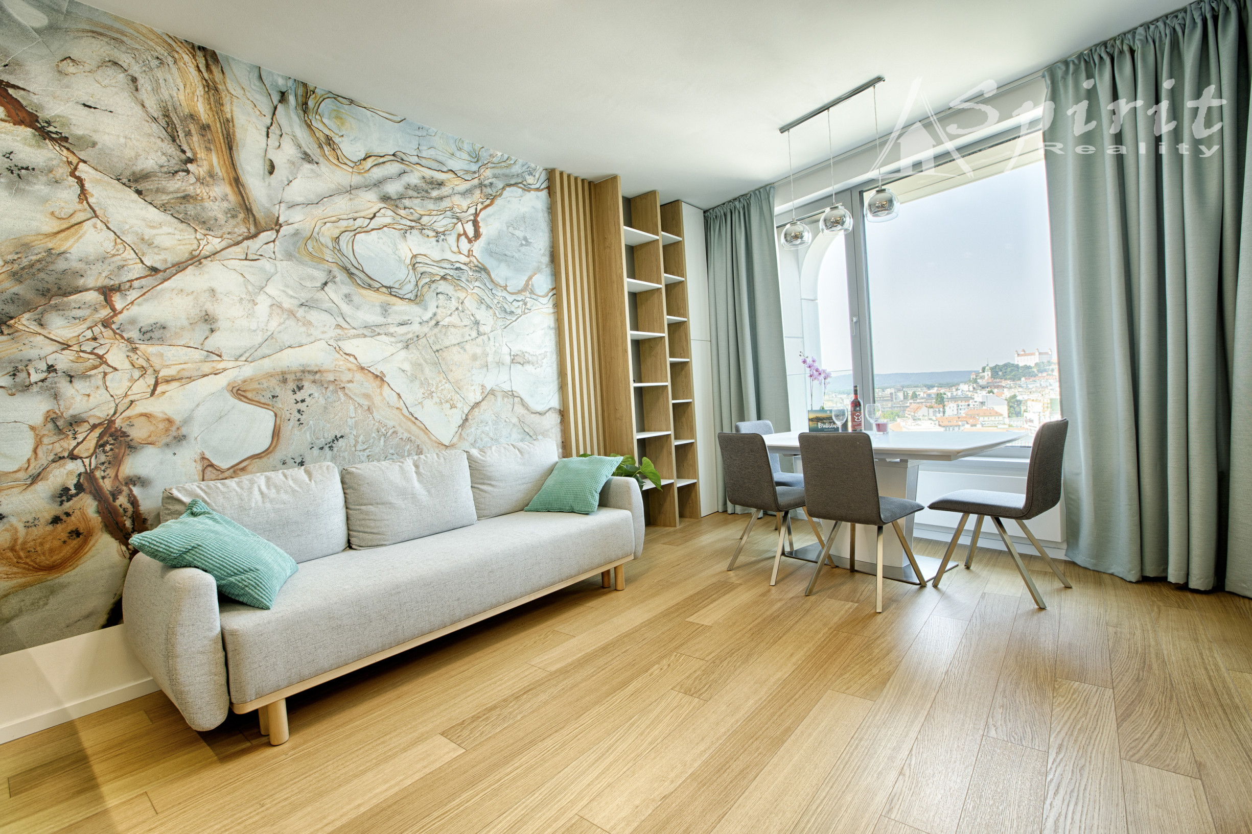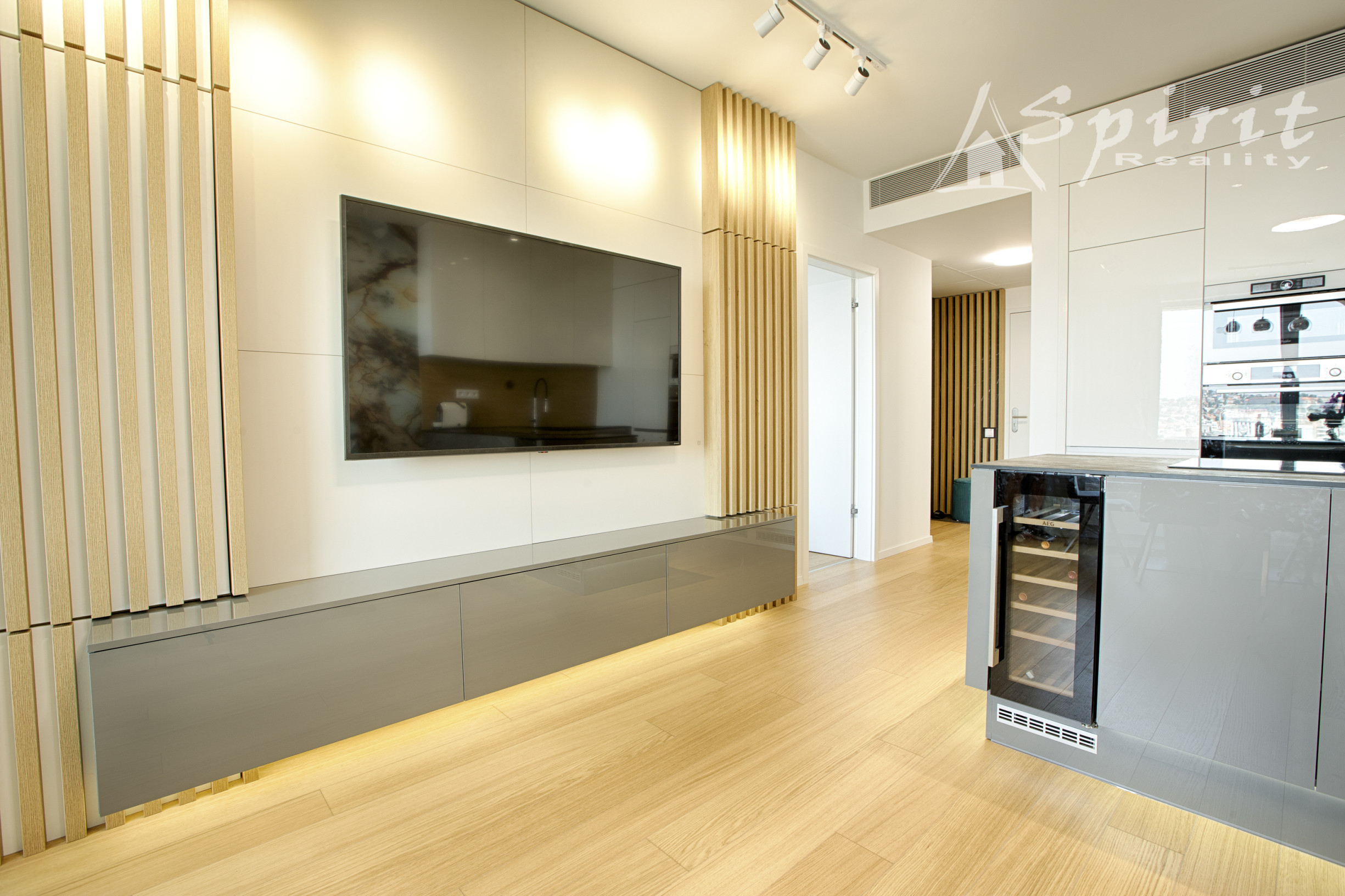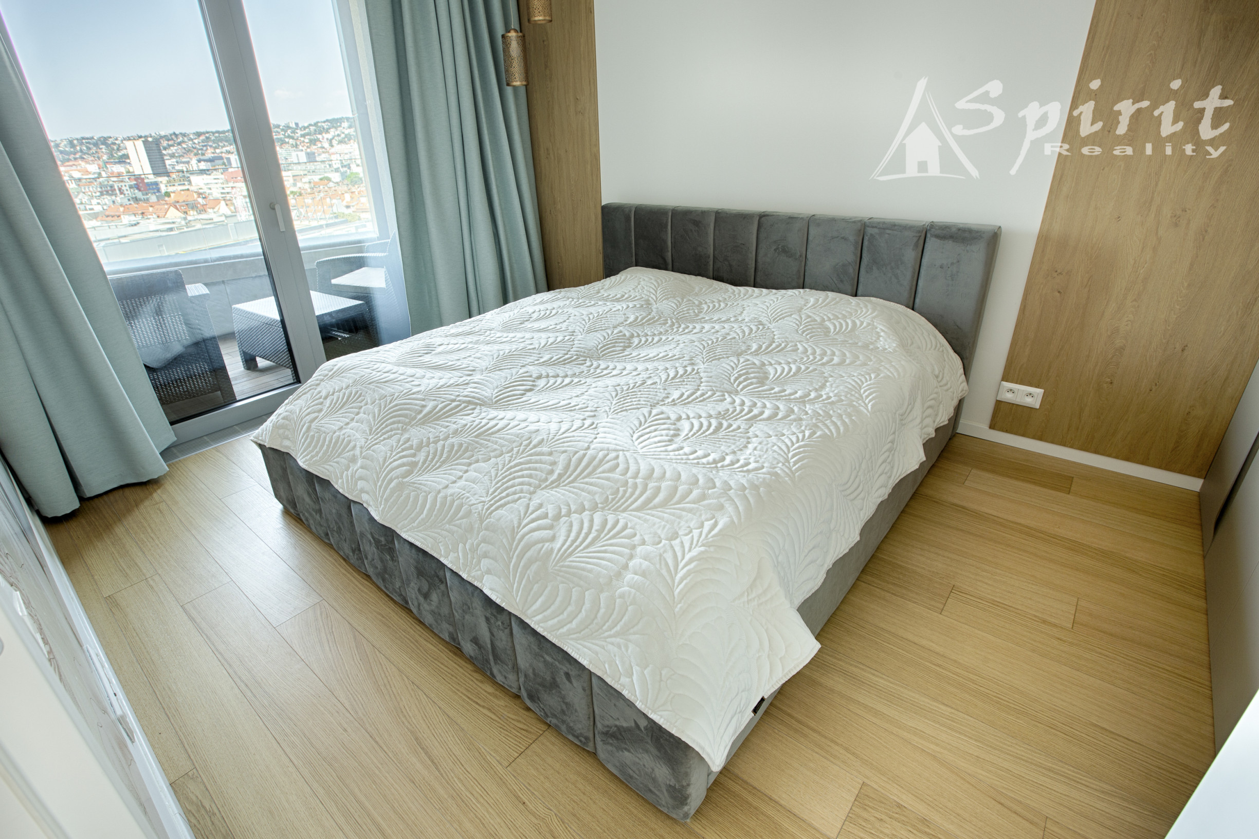 Ponúkame na prenájom luxusný, dizajnový 2i byt 50m2, s výhľadom na hrad, v projekte SKYPARK - Továrenská ul. Len 2 min. od OC NIVY.