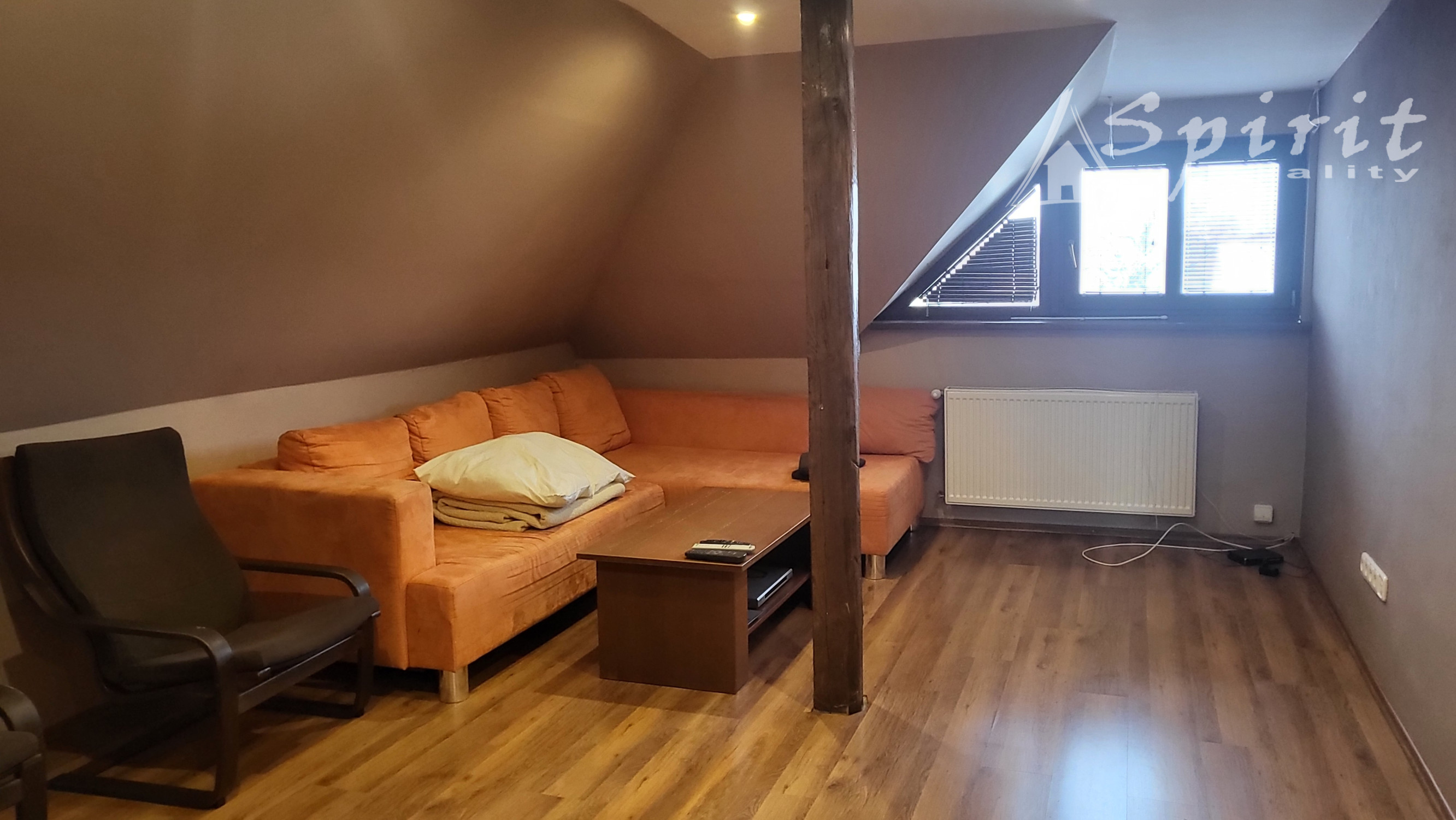 Na hornom posch. sa nachádza šatník, kúpeľňa s vaňou, obývačka s kuchyňu a 2 izby.