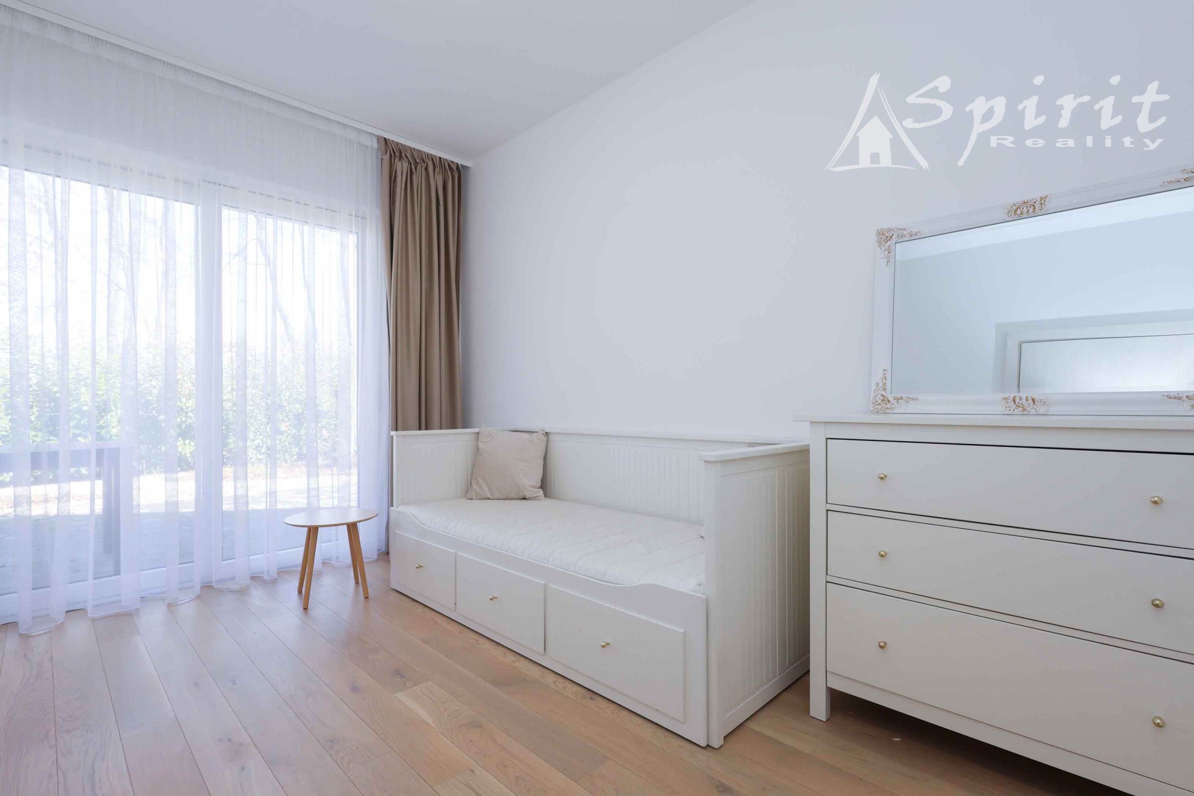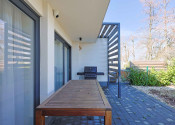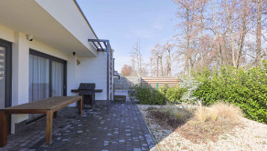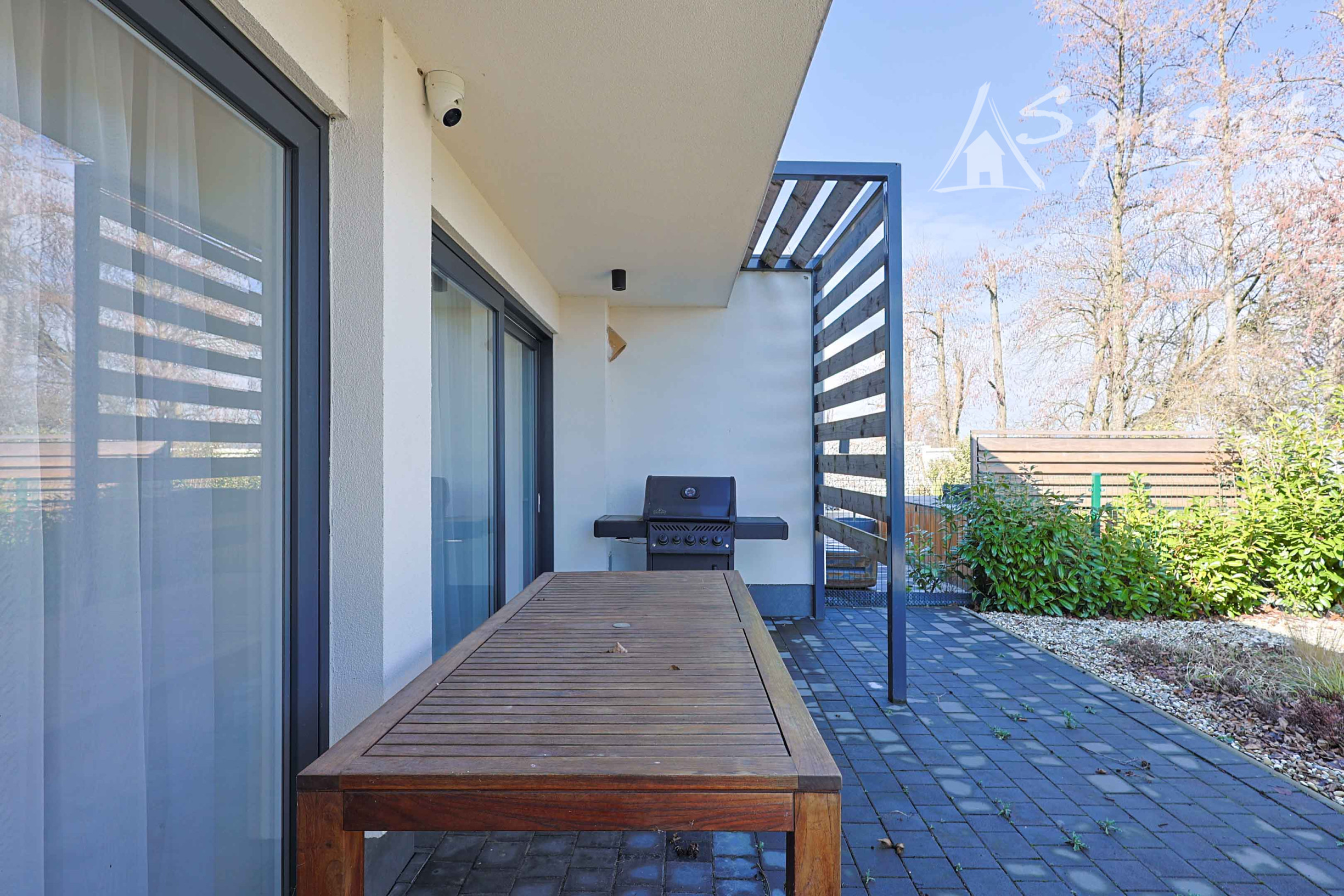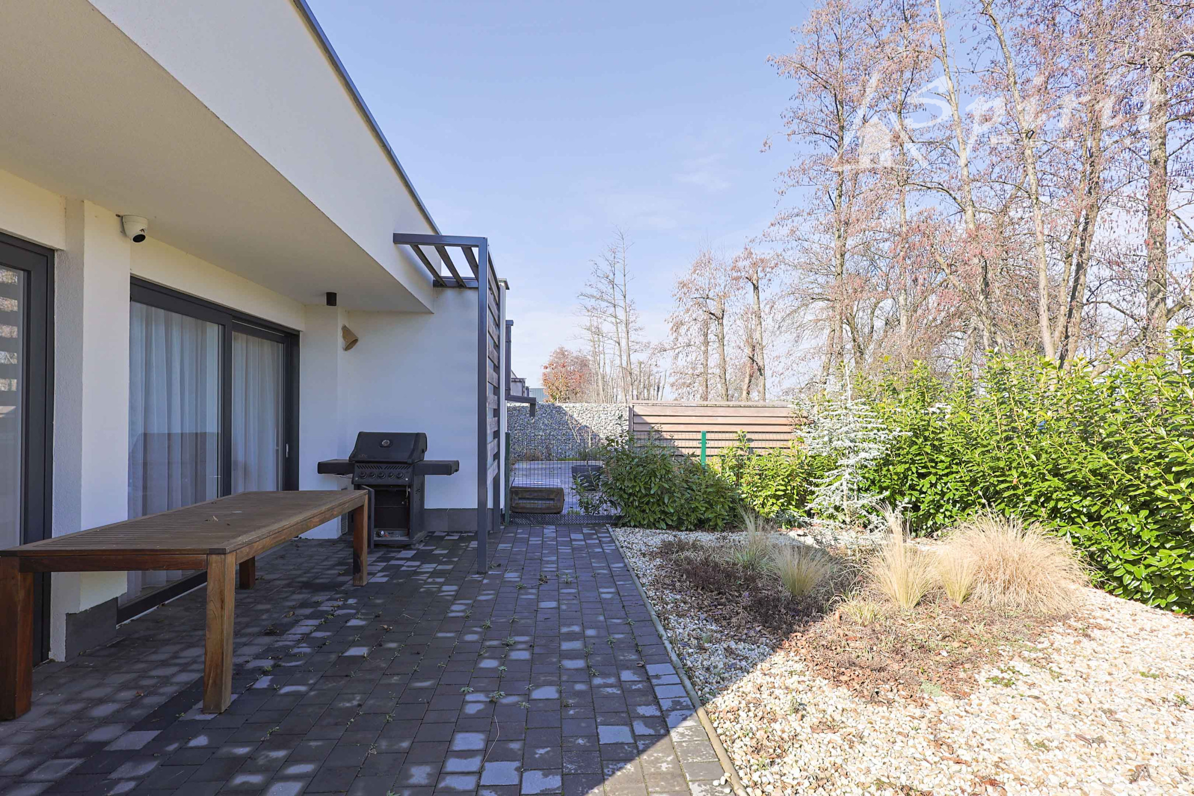 Terasa je plynulo prepojená s upravenou záhradou, ktorá poskytuje nádherný výhľad do okolitej zelene a borovicových lesov. Lokalita je tichá, estetická a veľmi príjemná na oddych aj celoročné bývanie.