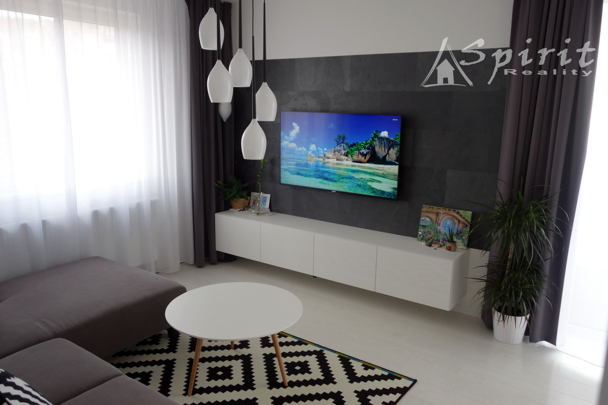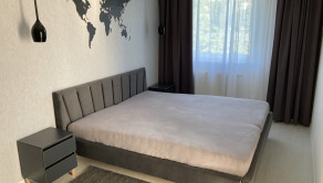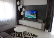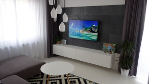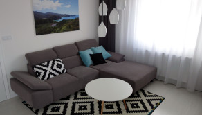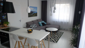 Má výmeru cca 50 m2 + balkon o výmere 5 m2 + pivnicu 2,5 m2. Z predsiene sa vchádza do obývačky, ktorá je spojená s kuchyňou, po ľavej strane je priestranná kúpeľňa s toaletou a samostatná spálňa.