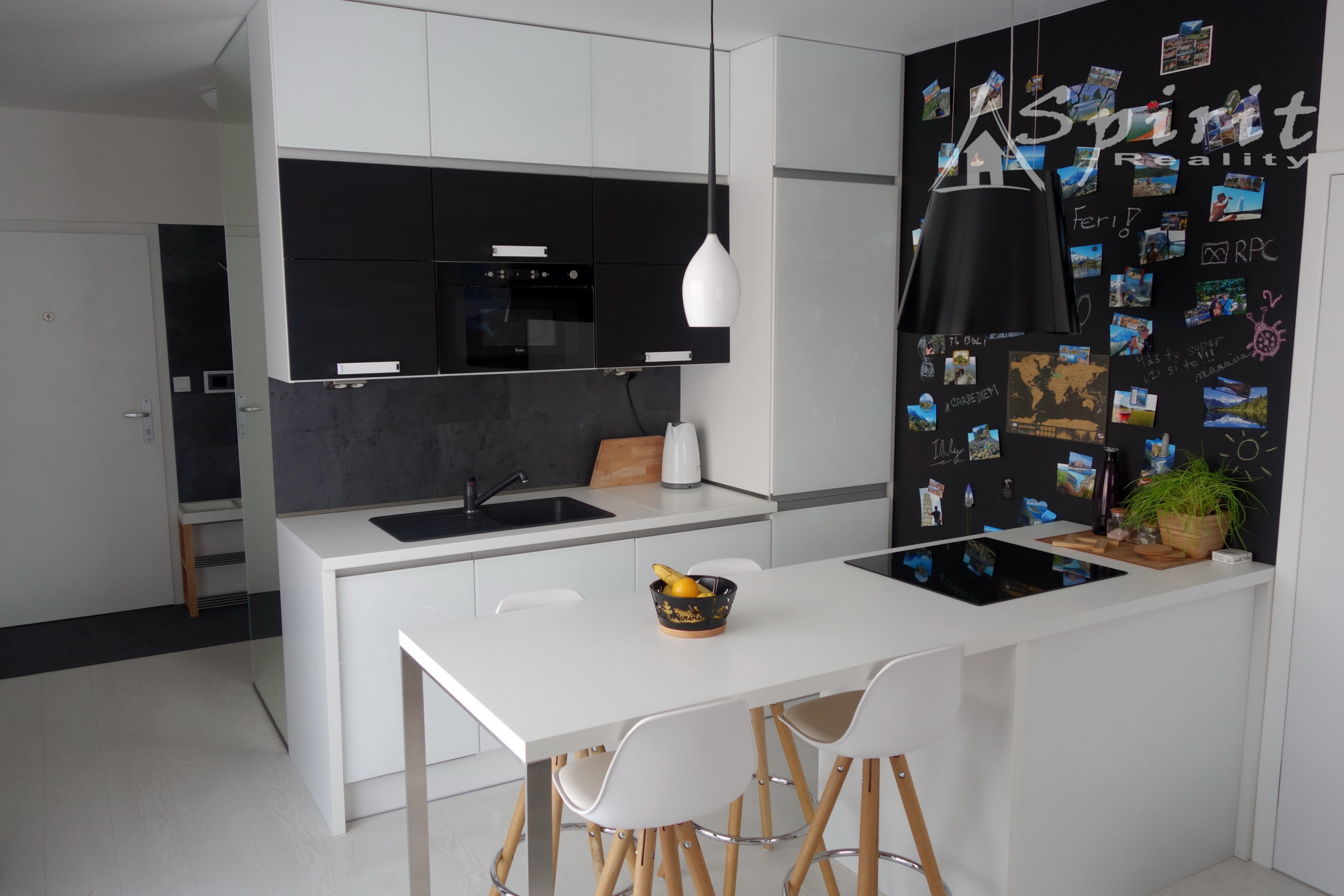 Byt je kompletne zariadený s kvalitným nábytkom vyrábaným na mieru a spotrebičmi: Vstavaná rúra, indukčná doska, umývačka riadu, chladnička s mrazákom A++ všetko značky Bosch, vstavaná mikrovlnka a práčka. K dispozícií je optický internet a TV Magio. K bytu je ponúkané parkovacie miesto v podzemnej garáži v rámci bytového komplexu.